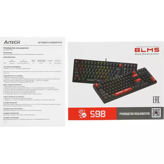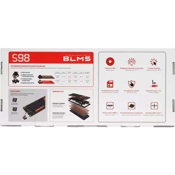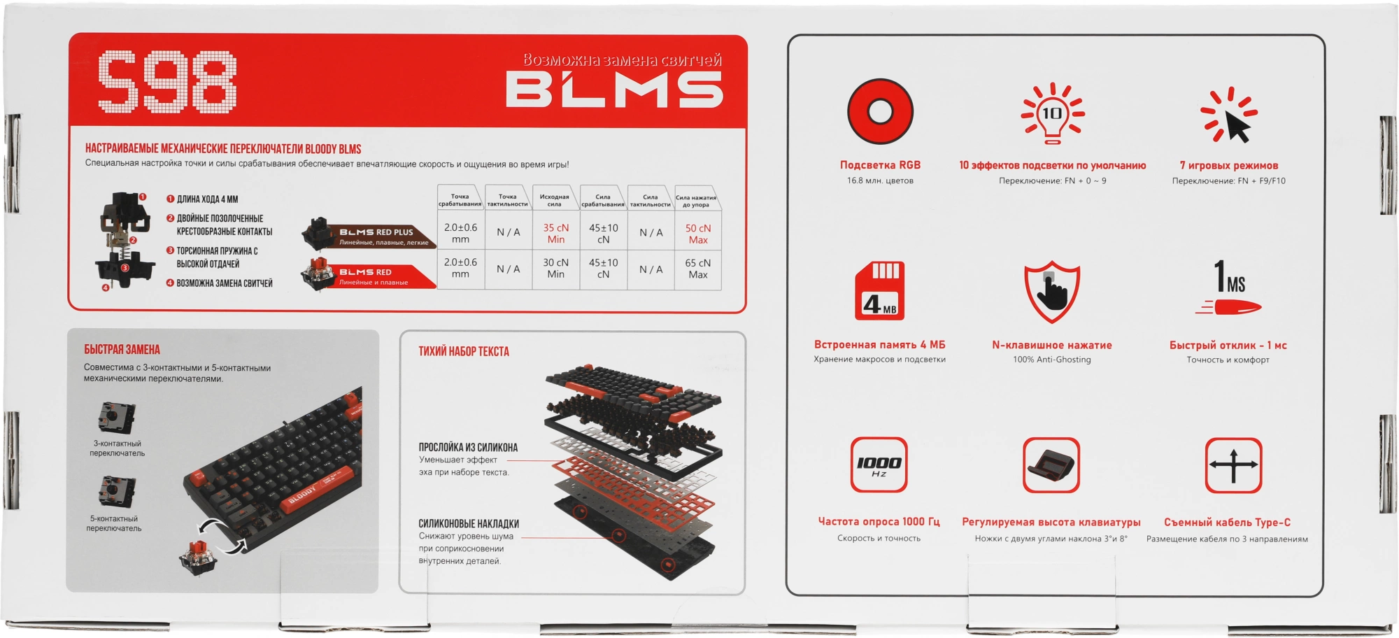Клавиатура A4-Tech Bloody S98 RED механическая черный/красный USB for gamer LED