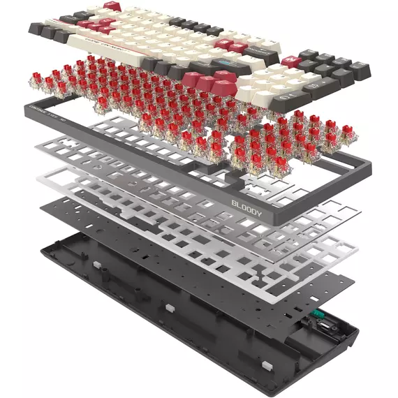 Клавиатура игровая A4-Tech Bloody WS98 Pixels Red механическая темно-серый/белый USB беспроводная BT/Radio Multimedia LED