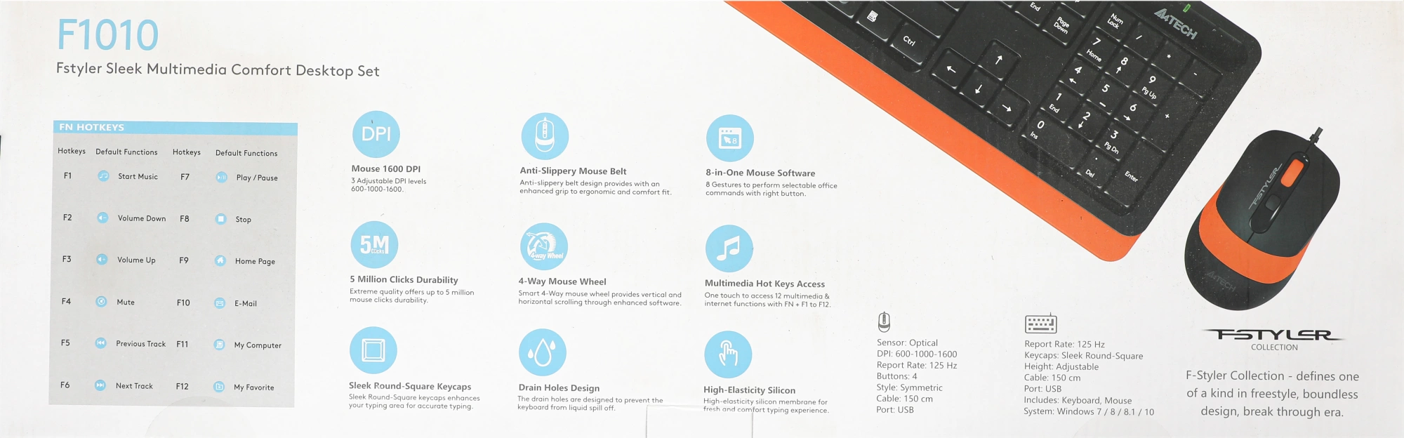 Клавиатура + мышь A4-Tech Fstyler F1010 ORANGE клав:черный/оранжевый мышь:черный/оранжевый USB Multimedia