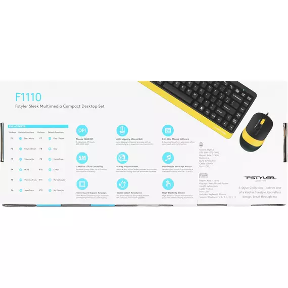 Клавиатура + мышь A4-Tech Fstyler F1110 BUMBLEBEE клав:черный/желтый мышь:черный/желтый USB Multimedia