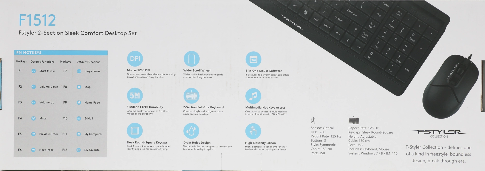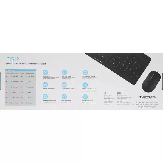 Клавиатура + мышь A4-Tech Fstyler F1512 BLACK клав:черный мышь:черный USB