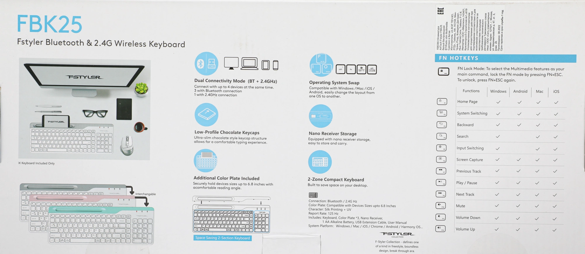 | Тип беспроводного соединения клавиатуры | Bluetooth/Радиоканал |