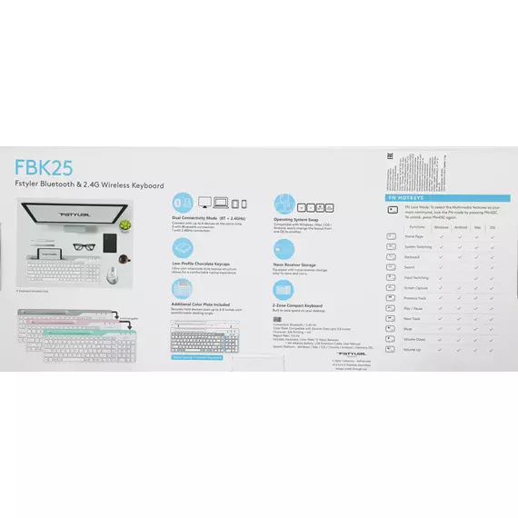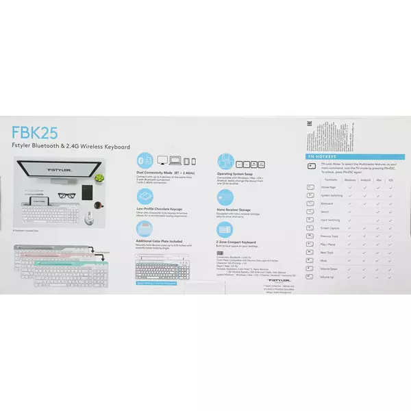 Клавиатура A4-Tech Fstyler FBK25 WHITE белый/серый USB беспроводная BT/Radio slim Multimedia