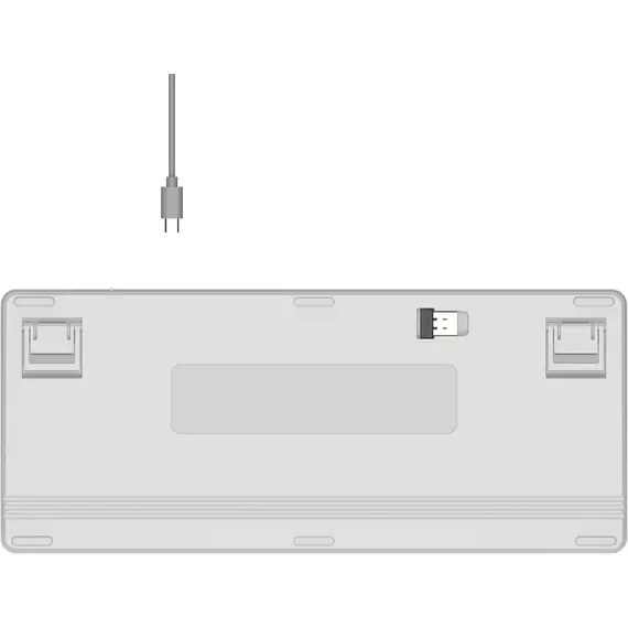 | Особенности | Клавиатура поддерживает два режима подключения - Bluetooth и с помощью USB-ресивера 2,4 ГГц. Работает с PC и Mac. Встроенная перезаряжаемая литиевая батарея емкостью 300 мАч позволяет использовать ее до 8 месяцев при полной зарядке.Ножки с двумя углами наклона по высоте 5° / 8° |