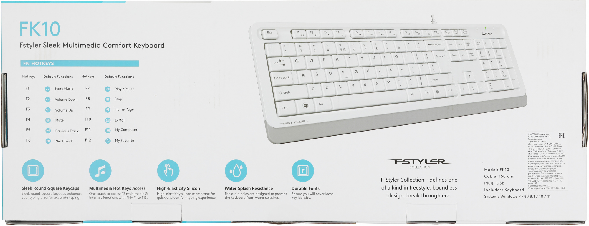 Наличие товара A4-Tech Fstyler FK10 WHITE