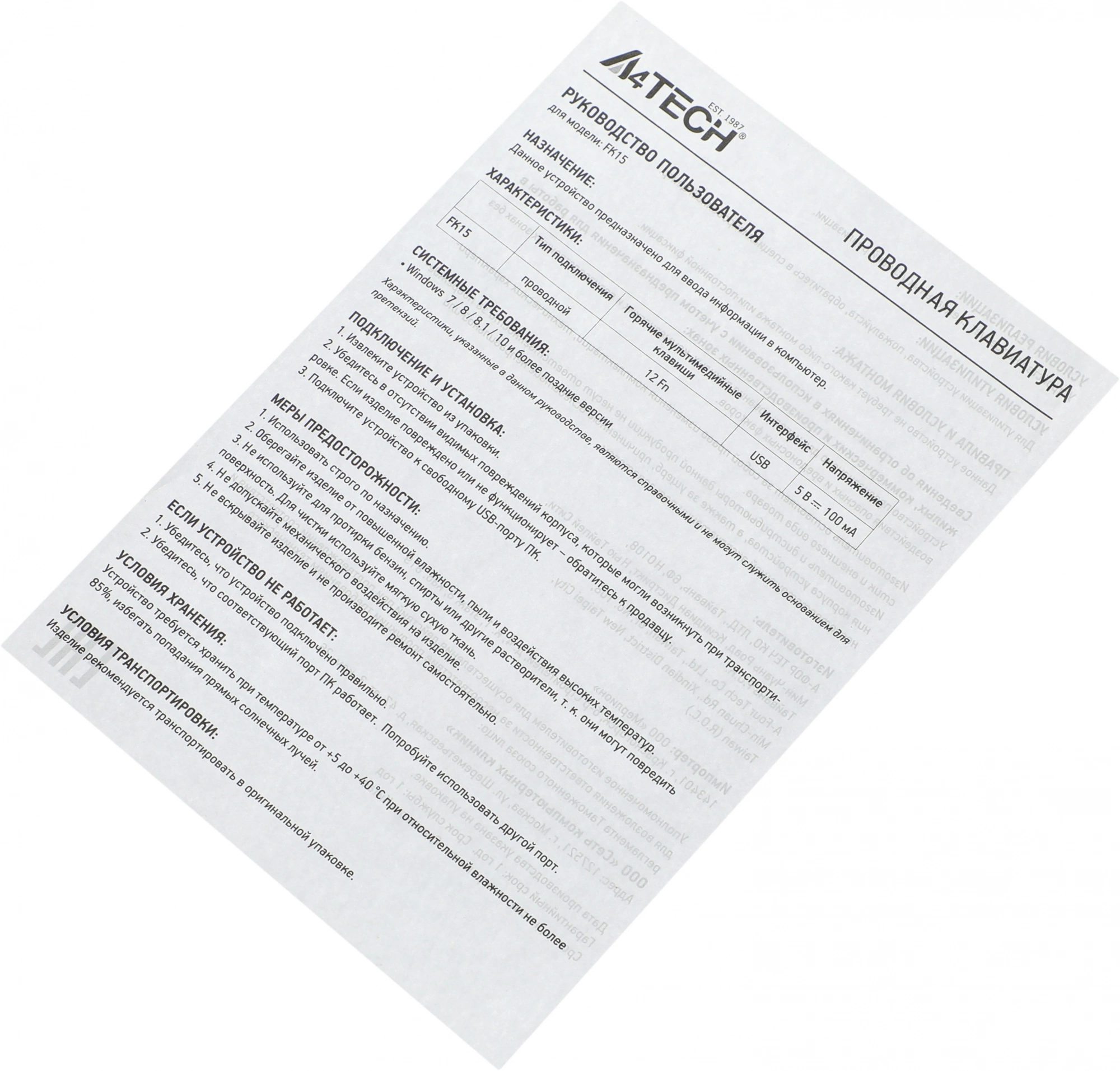 Описание A4-Tech Fstyler FK15 BLACK
