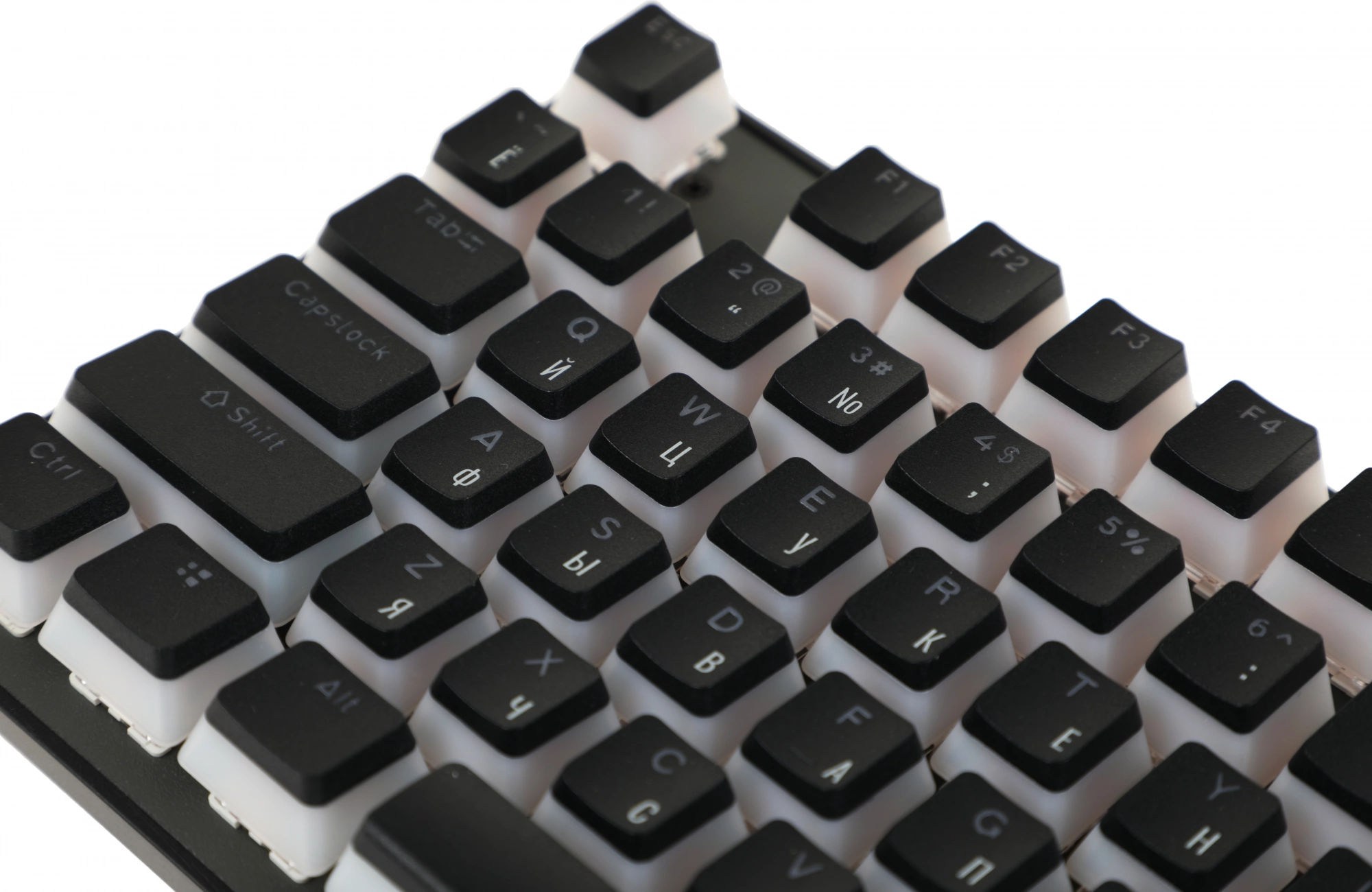 | Особенности | Механическая клавиатура с негромкими красными свичами.Широкие откидные ножки. Резиновые накладки. Клавиатура типа скелетон с матовыми подсвечивающимися кейкапами (RGB подсветка). Регулируемая подсветка. Компактное расположение клавиш. Металлическая верхняя панель |