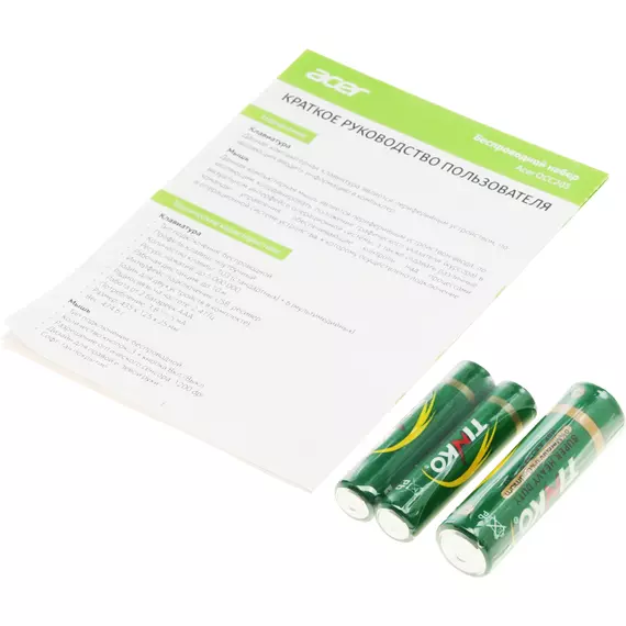 | Комплект поставки | Беспроводные клавиатура и мышь USB-ресивер (единый для двух устройств)Батарейки АА х 1 штБатарейка ААА х 2 штКраткое руководство пользователя |