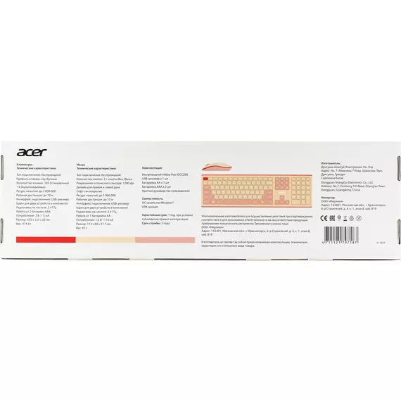 Клавиатура + мышь Acer OCC205 клав:розовый/бежевый мышь:розовый/бежевый USB беспроводная slim Multimedia [ZL.ACCEE.00F]