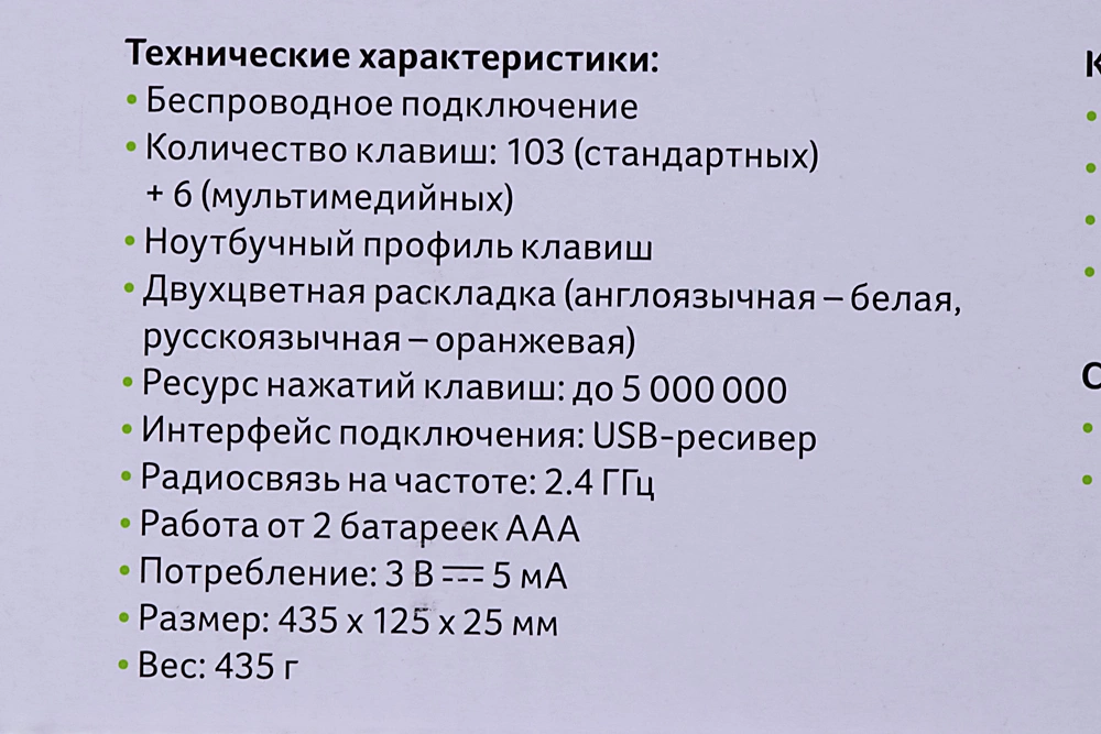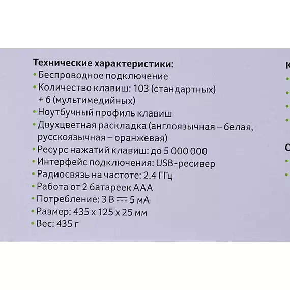 | Размеры клавиатуры | 435x25x125мм |