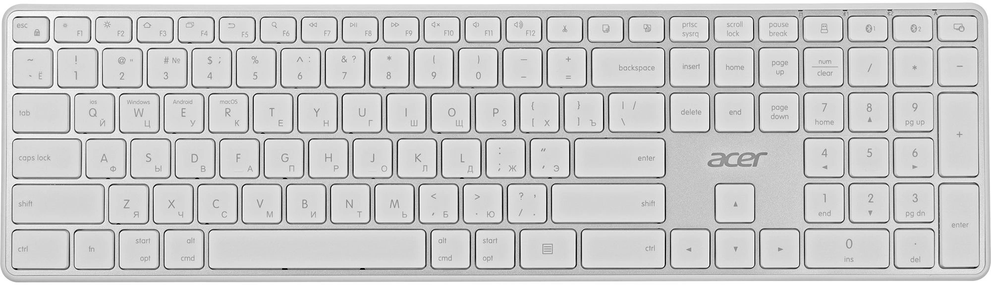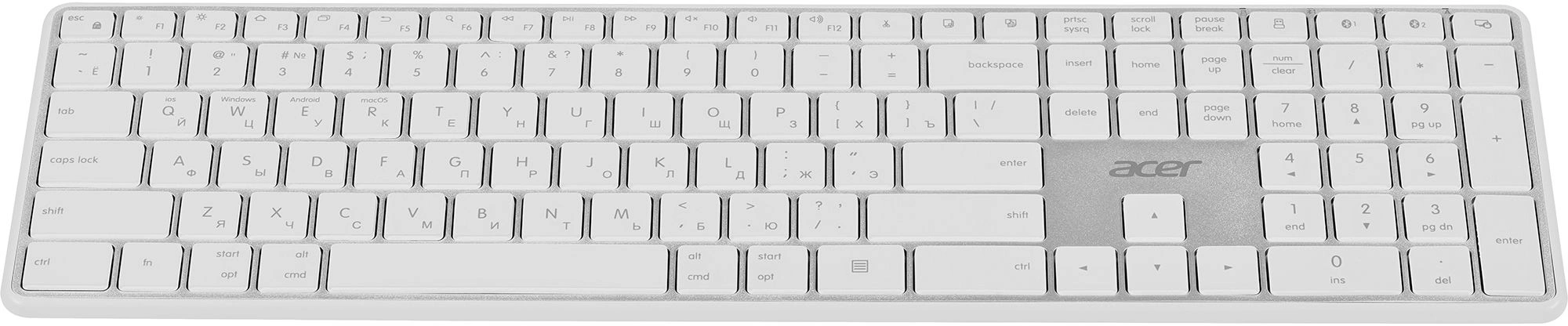 Клавиатура Acer OKR301 белый/серебристый USB беспроводная BT/Radio slim Multimedia [ZL.KBDEE.015]