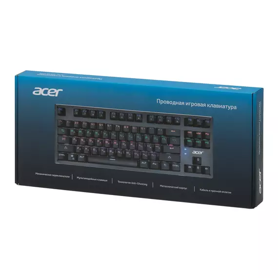 | Особенности | Компактная механическая клавиатура без цифрового блока. Занимает меньше места. Прорезиненные ножки, Жесткая металлическая пластина, длинный кабель, регулируемая подсветка. Поддержка мультимедийных функций. Универсальный инструмент для работы и игр.Функция регулировки яркости подсветки. |