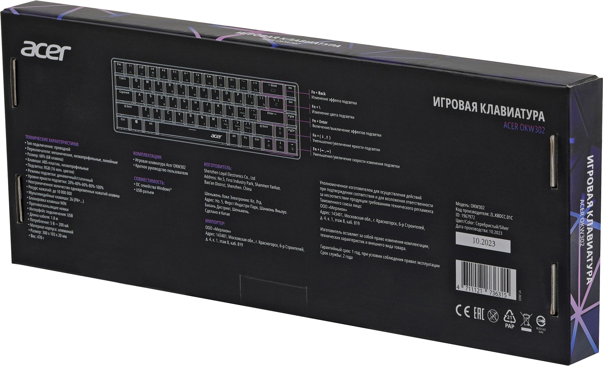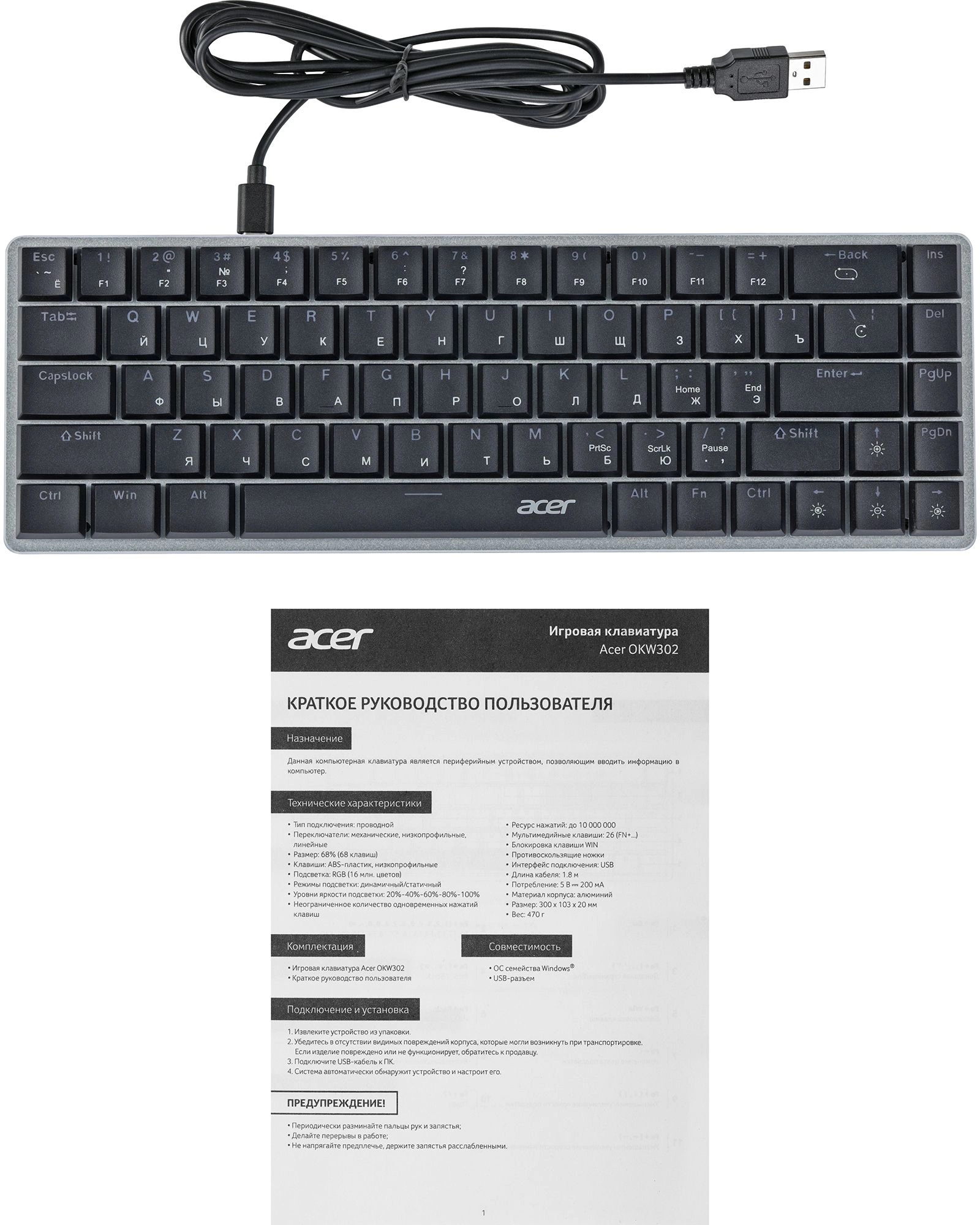 Клавиатура Acer OKW302 механическая серебристый USB Multimedia for gamer для ноутбука LED [ZL.KBDCC.01C]