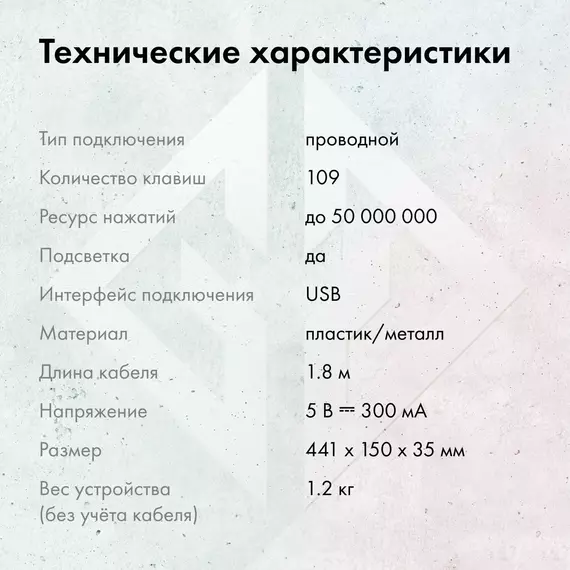 | Особенности | Ресурс нажатий: до 50 000 000 |