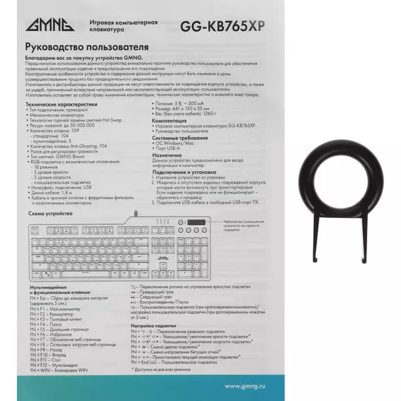 Клавиатура GMNG GG-KB765XP механическая черный USB Multimedia for gamer LED [1901096]