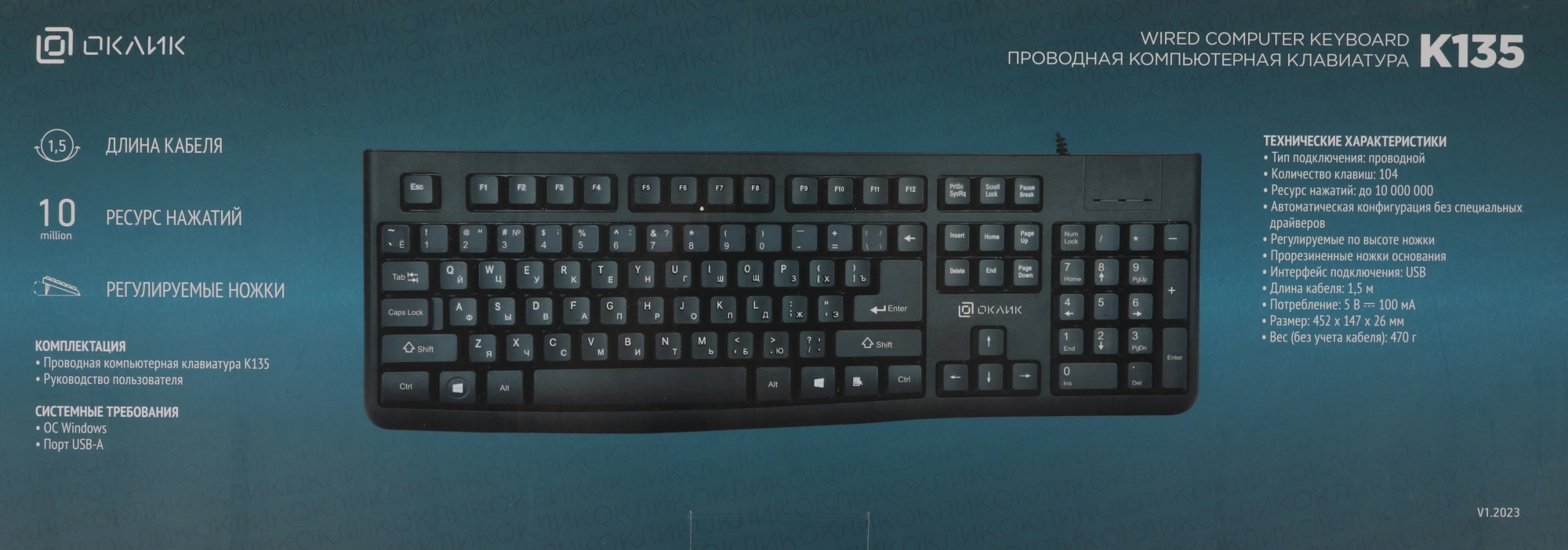 | Размеры клавиатуры | 452x26x147мм |