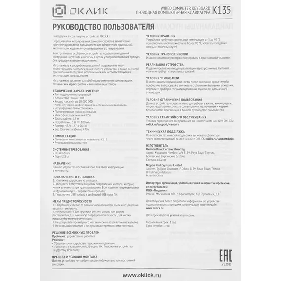 | Вес (клавиатуры) | 0.47 кг |