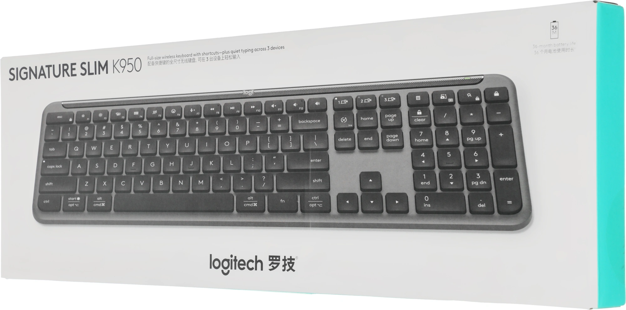 Клавиатура Logitech K950 черный USB беспроводная BT/Radio slim [920-012434]