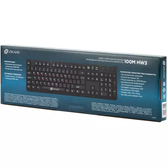 Клавиатура Oklick 100M HW3 черный USB [654570]