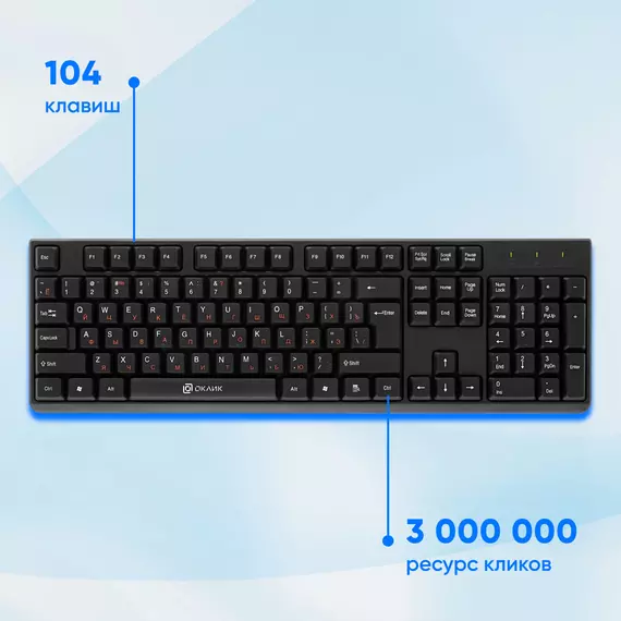 | Особенности | Универсальная офисная клавиатура,Ресурс 3 000 000 нажатий |