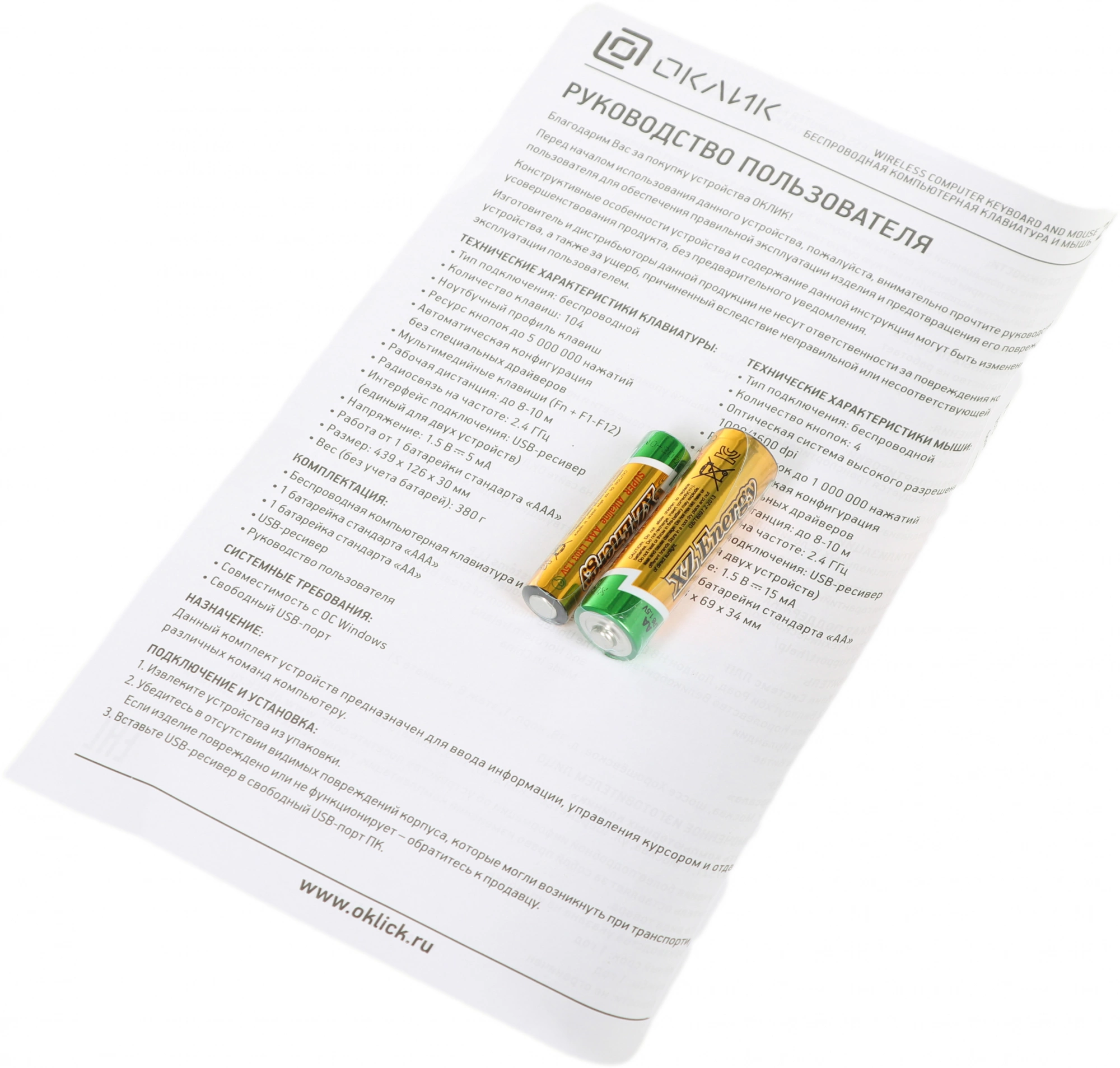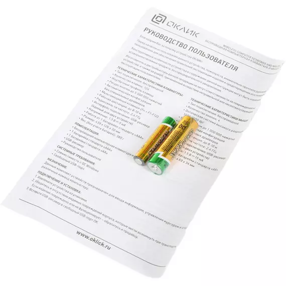 | Комплект поставки | Беспроводная компьютерная клавиатура и мышь 240M, 2 батарейки стандарта «AAA», 1 батарейка стандарта «AA», USB-ресивер |