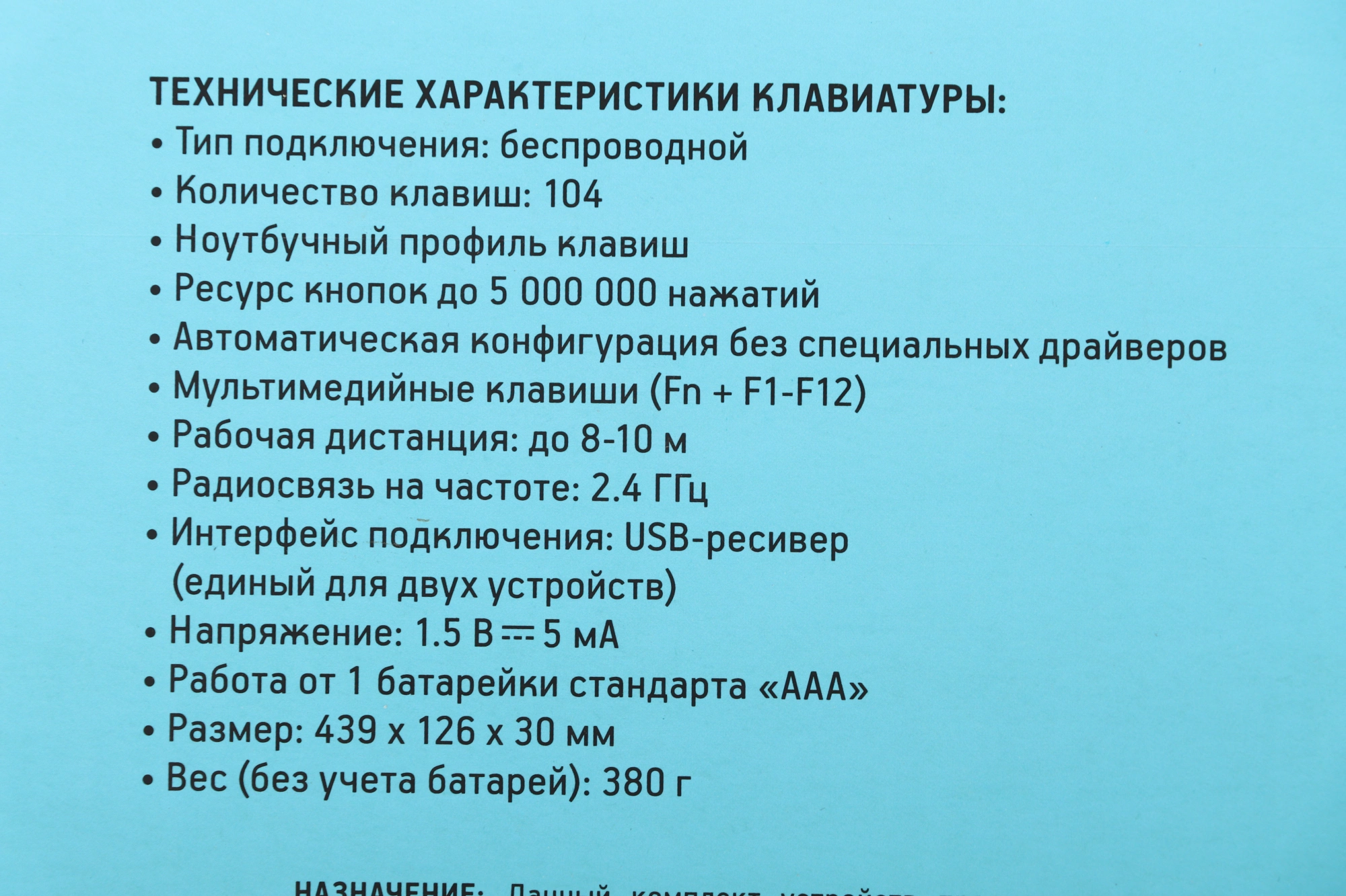 | Питание клавиатуры | 1xAAA |