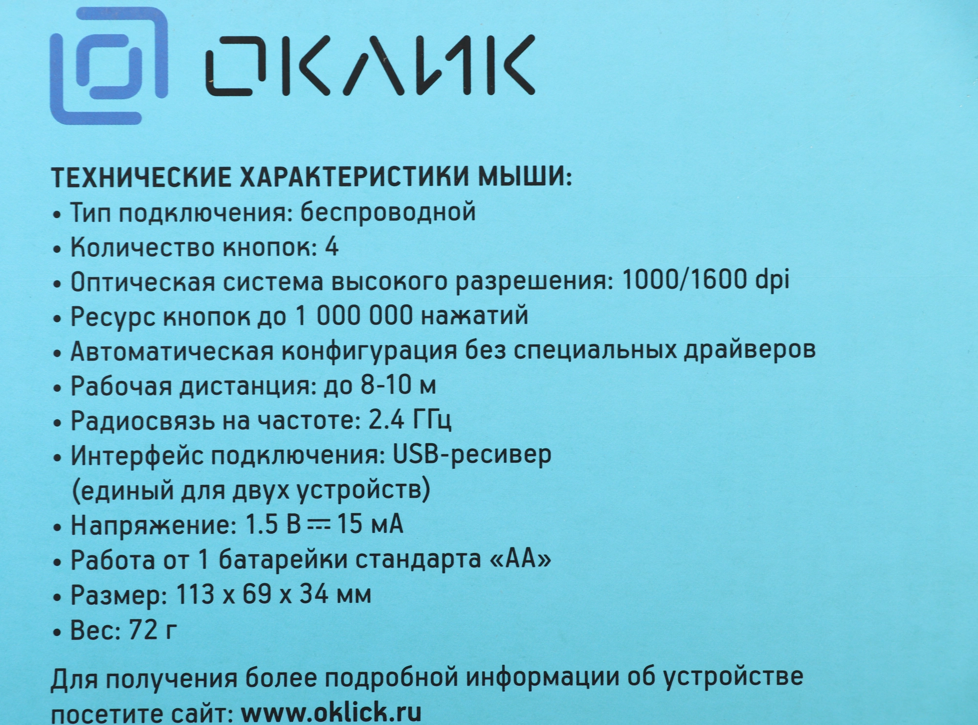 | Размеры мыши | 113x69x34мм |