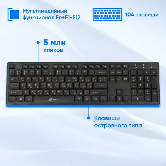 Клавиатура + мышь Oklick 240M клав:черный мышь:черный USB беспроводная slim Multimedia [1091253]
