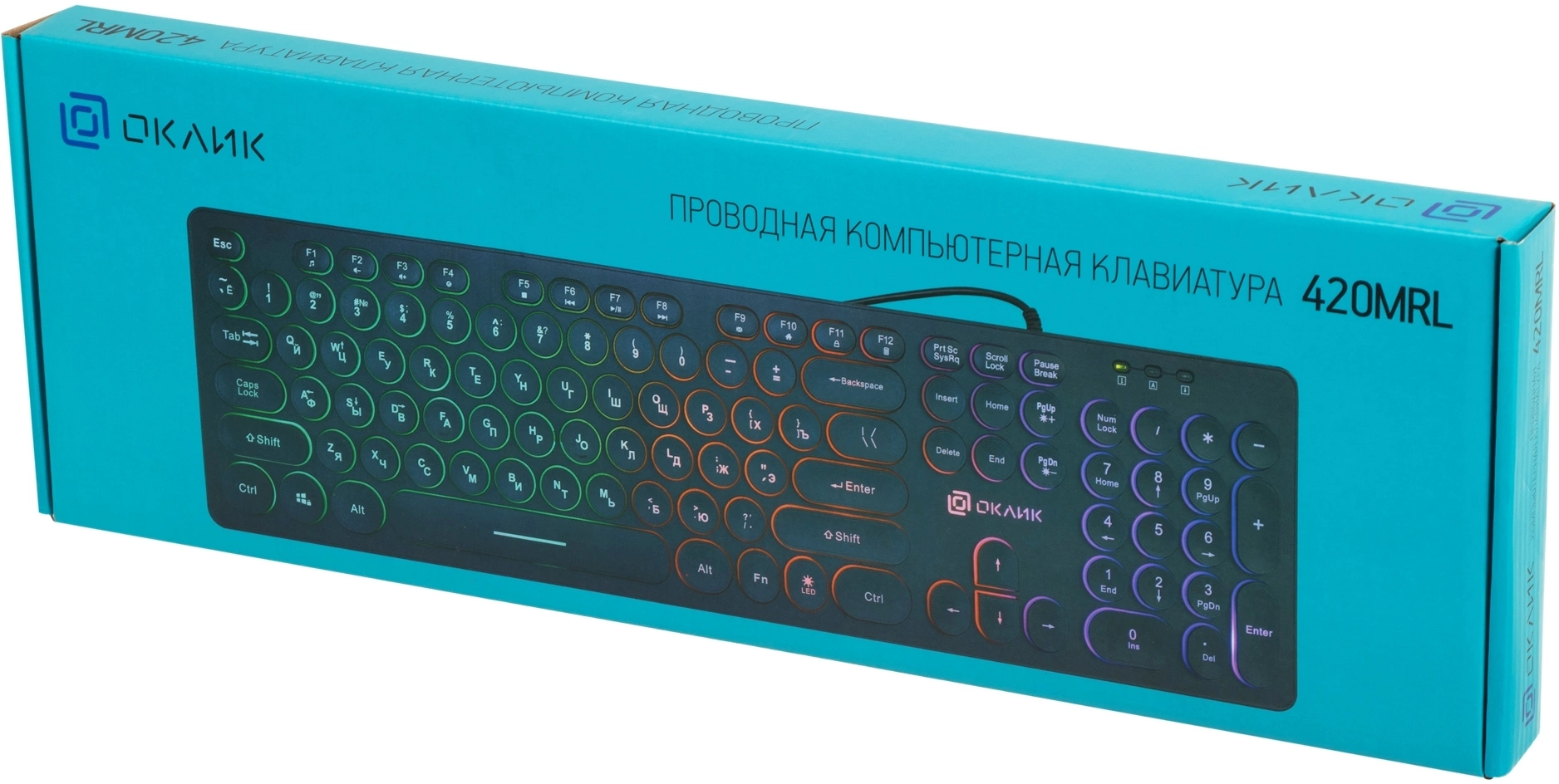 Клавиатура Oklick 420MRL черный USB slim Multimedia LED [1091226]
