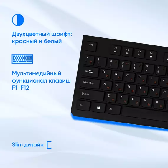 | Особенности | Тонкая клавиатура с клавишами островного типа, с мультимедийным функционалом |