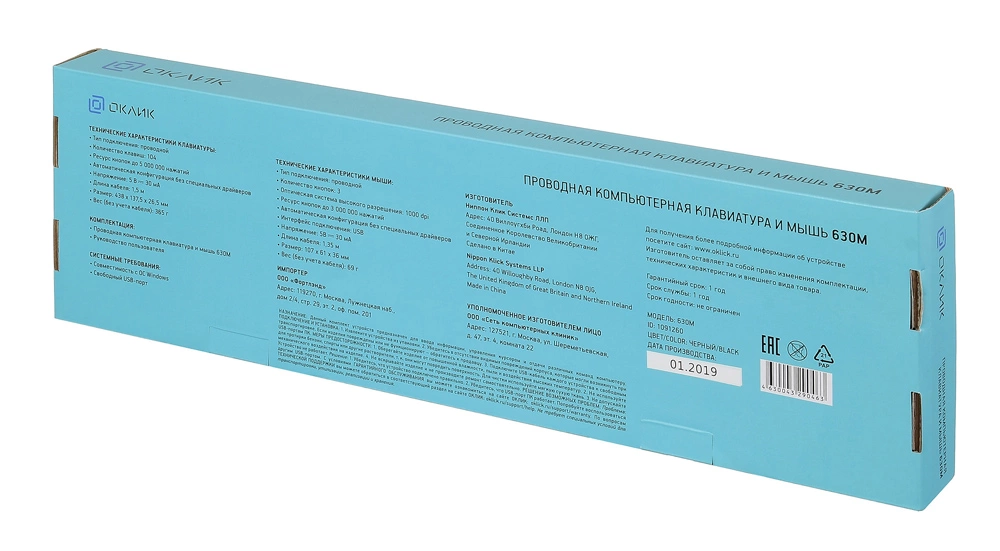 | Комплект поставки | Проводная компьютерная клавиатура и мышь 630M |