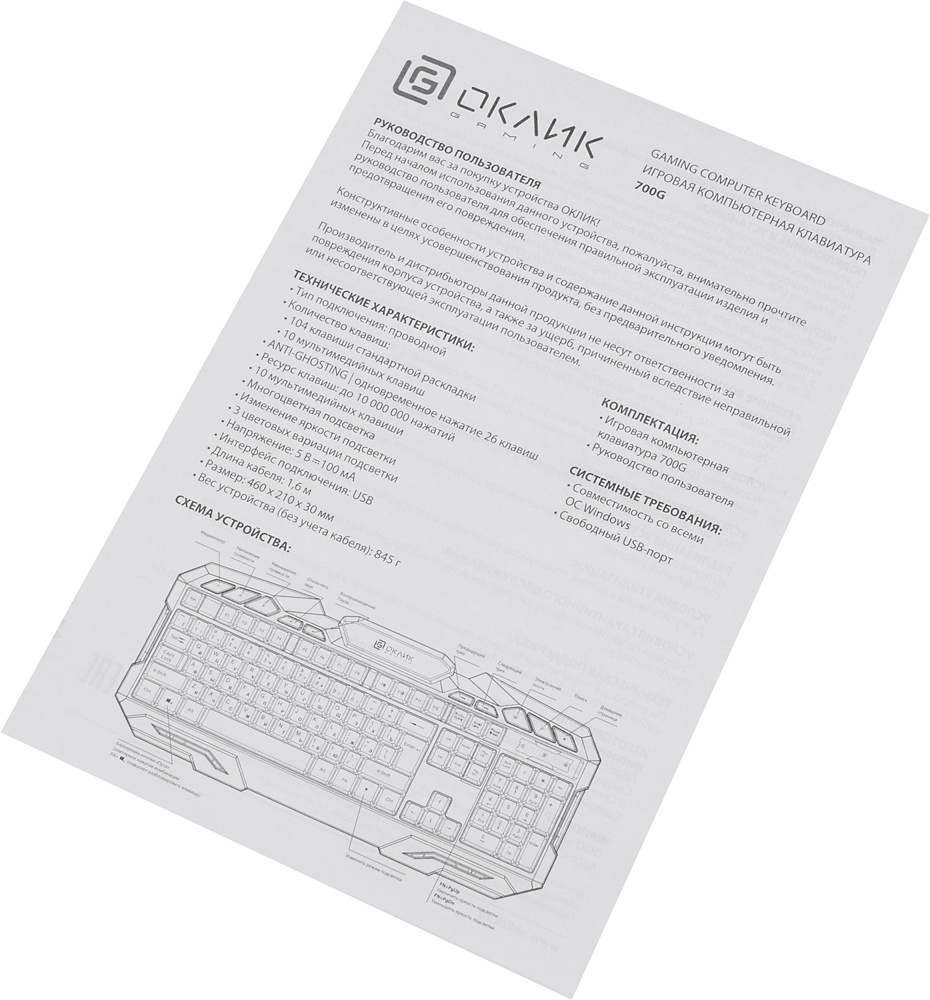 Клавиатура Oklick 700G Dynasty черный USB Multimedia for gamer LED [1061657]