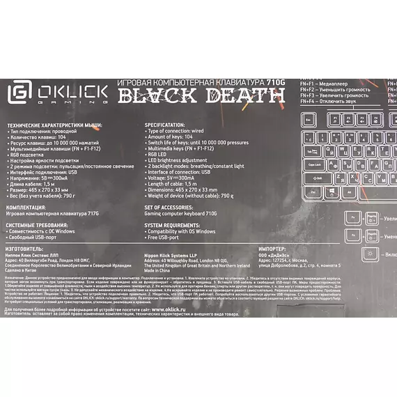 Клавиатура Oklick 710G BLACK DEATH