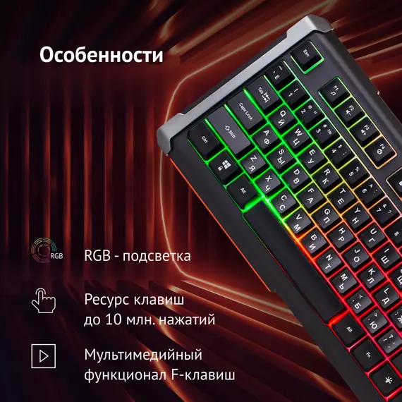Клавиатура Oklick 710G BLACK DEATH Черный/серый, USB, Multimedia for gamer, LED [476393]