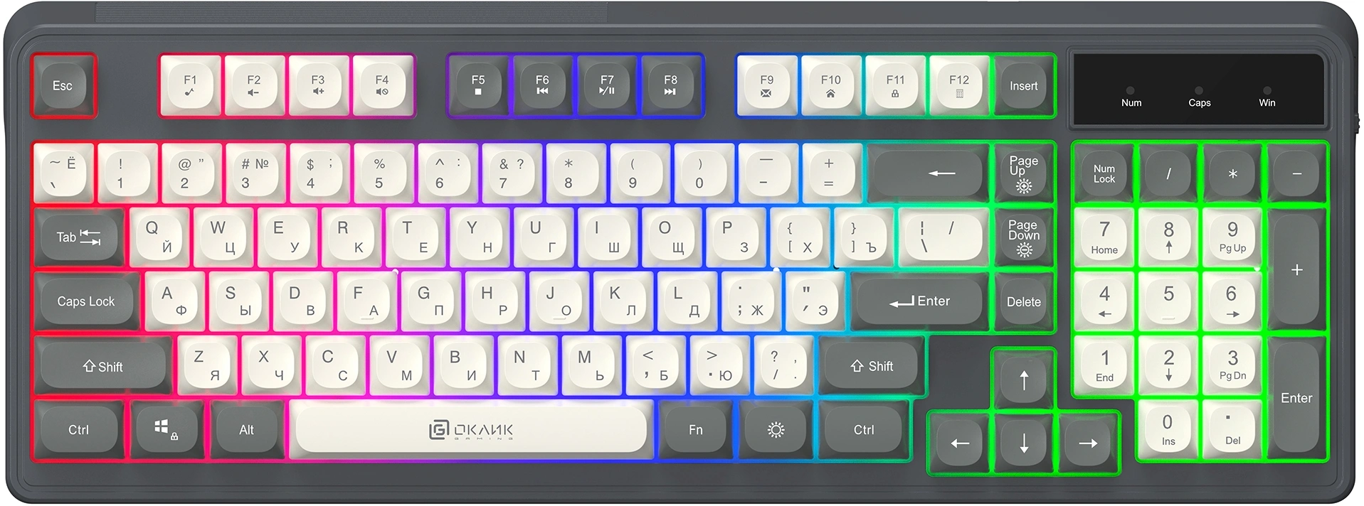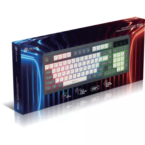 Клавиатура Oklick 731G серый/белый USB Multimedia for gamer LED