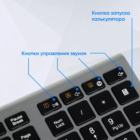 | Особенности | Тонкая беспроводная клавиатура с клавишами ножничного типа, клавиши с мультимедийным функционалом |