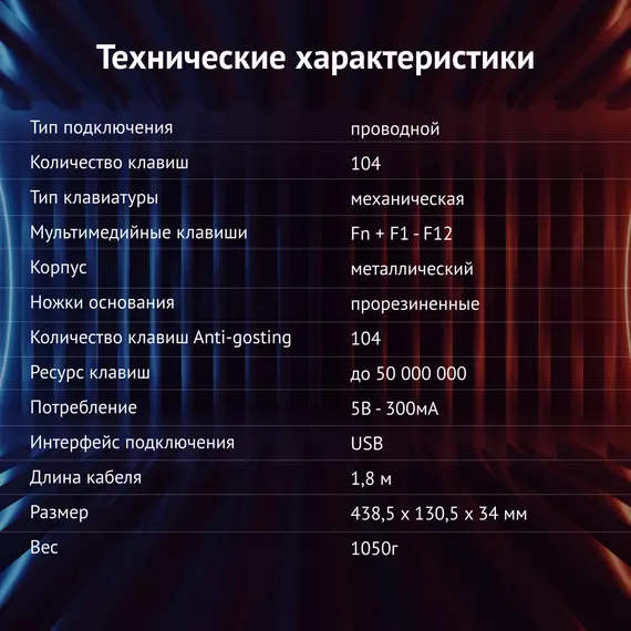 | Размеры клавиатуры | 438.5x34x130.5мм |