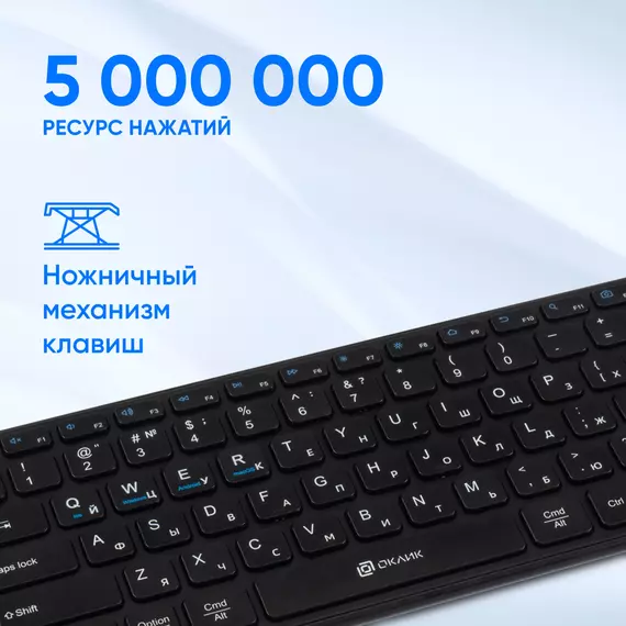 Клавиатура Oklick K614W черный USB беспроводная slim Multimedia Touch [1979327]