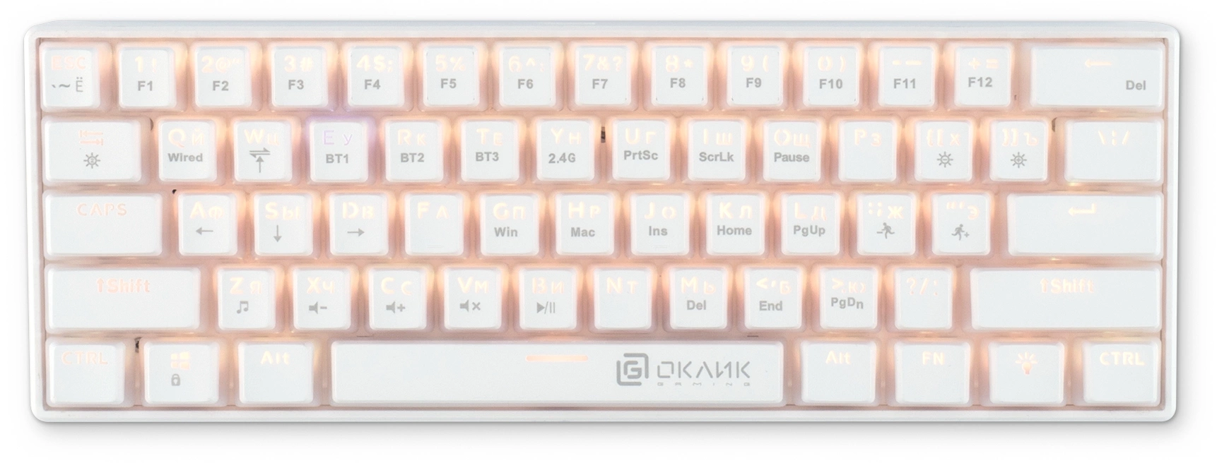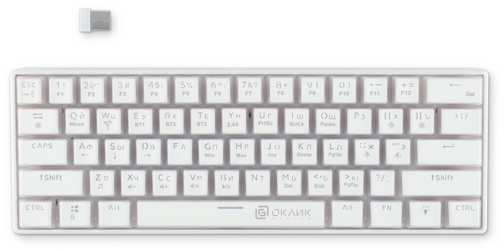 Клавиатура Oklick K763W механическая белый USB беспроводная BT/Radio Multimedia for gamer LED [1920562]