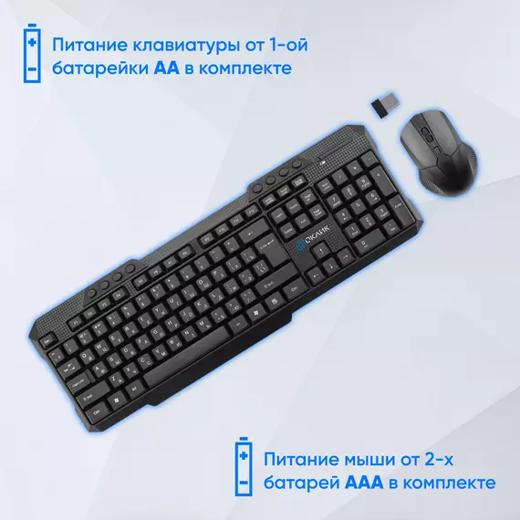 | Комплект поставки | Клавитаура, мышь, usb-receiver, батарейка АА - 1, батарейка ААА -2 |