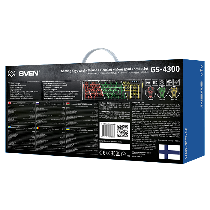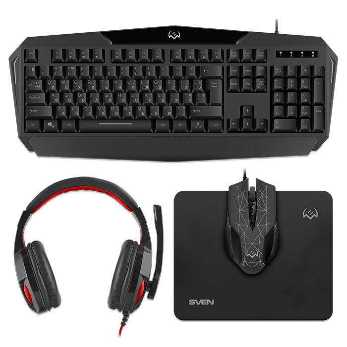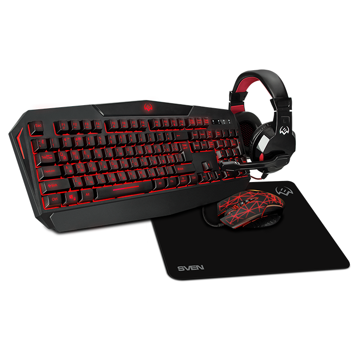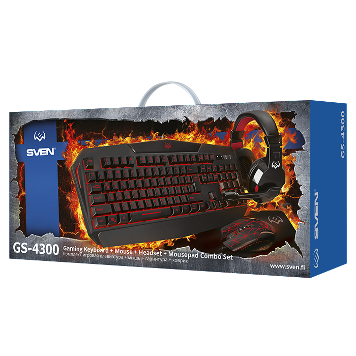 Игровой набор SVEN GS-4300 клавиатура + мышь + гарнитура + коврик, 104 кл.+12Fn, 8 смен. кл. (200-4800DPI) [SV-018382]