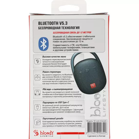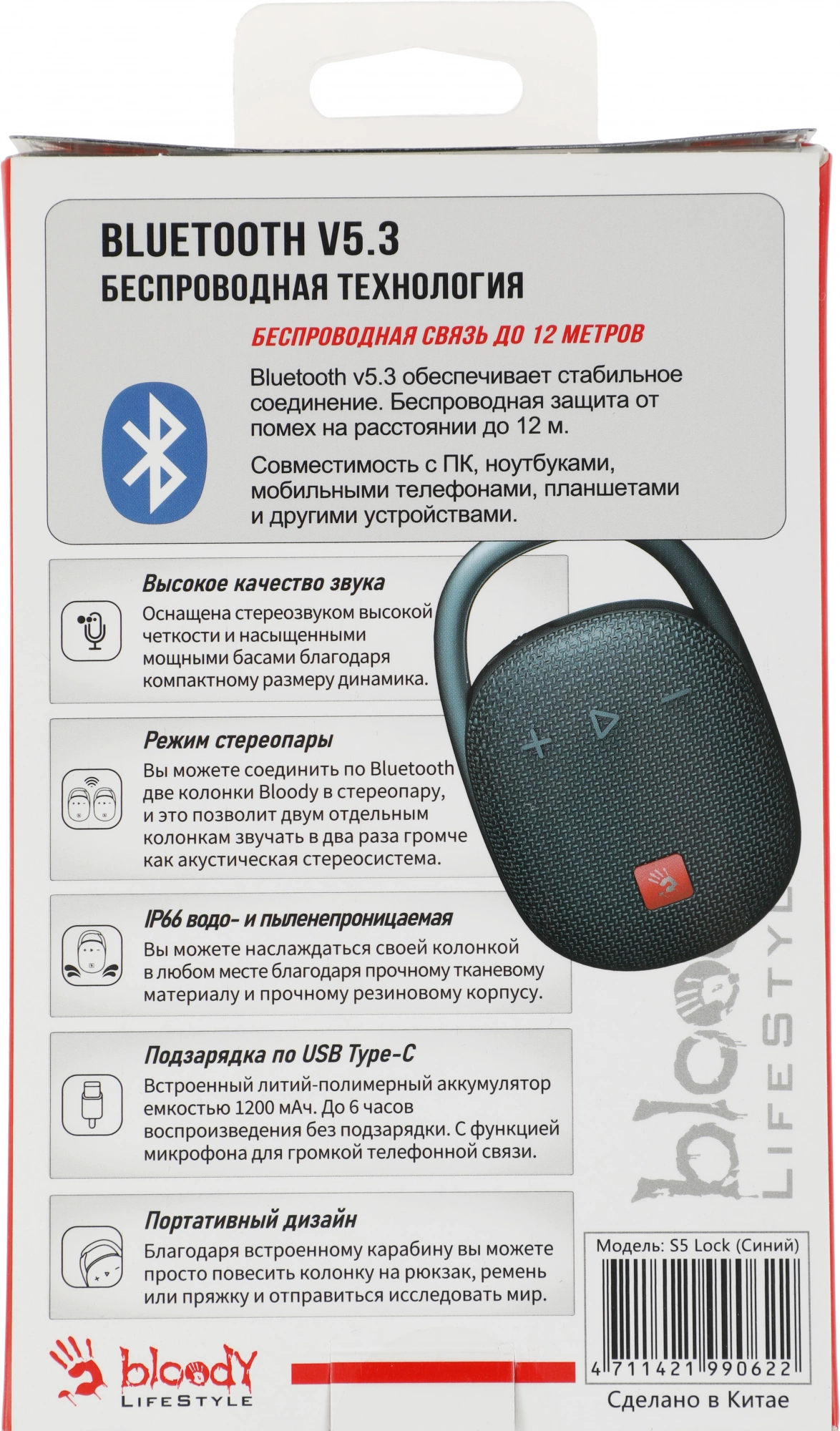 Колонка порт. A4-Tech Bloody S5 Lock синий 5.5W 1.0 BT 12м 1200mAh