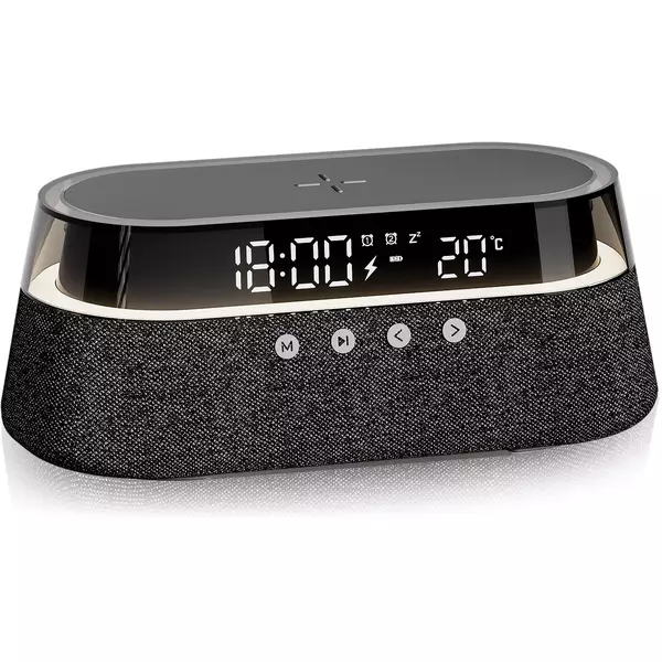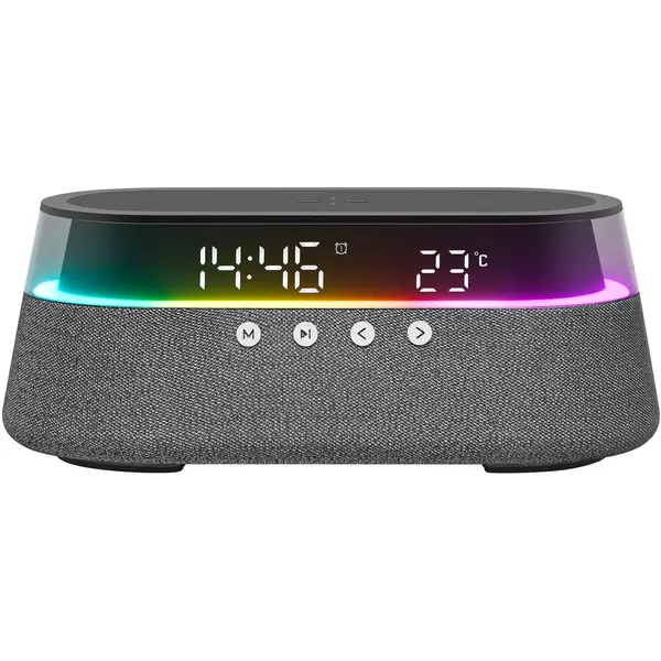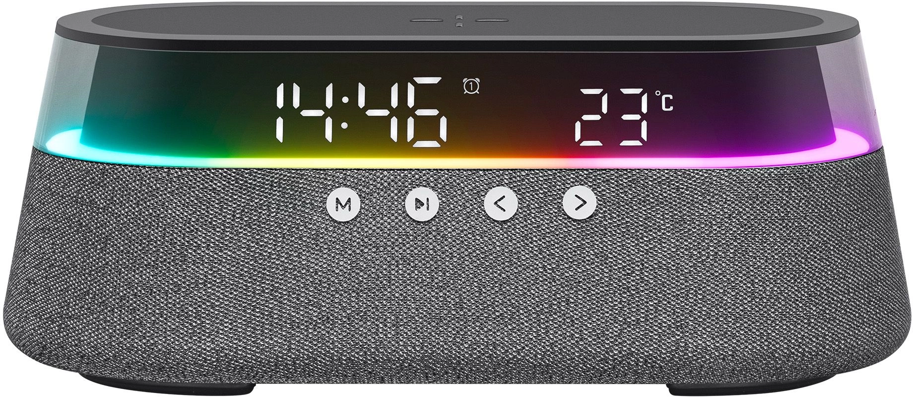 Ночник и часы с регулируемой подсветкой, будильник, радио, беспроводная зарядка для ваших устройств и мощная музыкальная колонка собраны в одном уникальном гаджете.