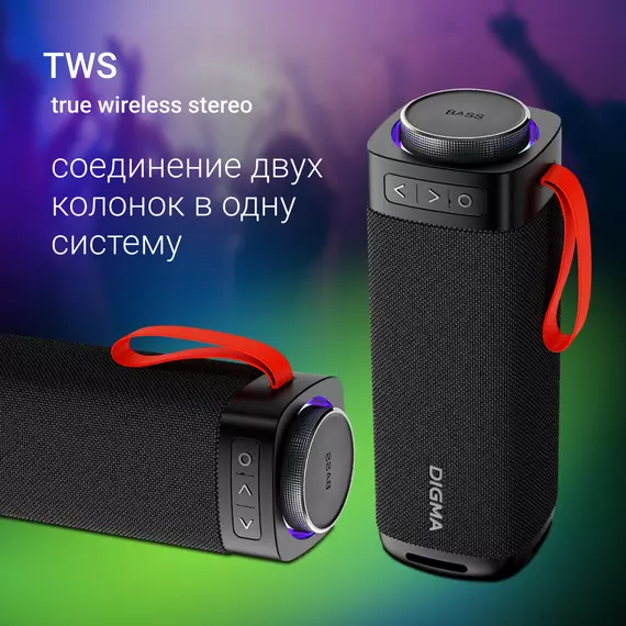 Колонка порт. Digma D-PS1522 черный 60W 2.0 BT 10м 3000mAh [PS1522B]
