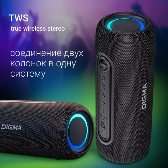 Колонка порт. Digma D-PS1524 черный 20W 2.0 BT 10м 2000mAh [PS1524B]
