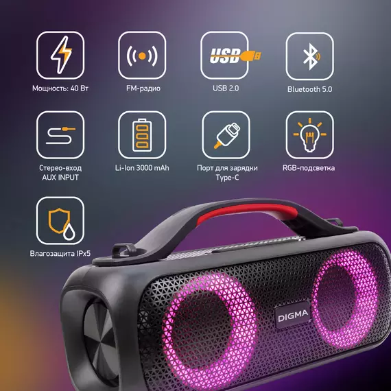 Колонка порт. Digma D-PS1531 черный 40W 2.0 BT 10м 3000mAh [SP1531B]
