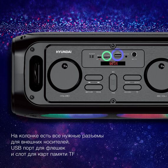 Колонка портативная Hyundai H-PS1030 черный/черный 40W 2.0 BT 10м 3600mAh [H-PS1030]