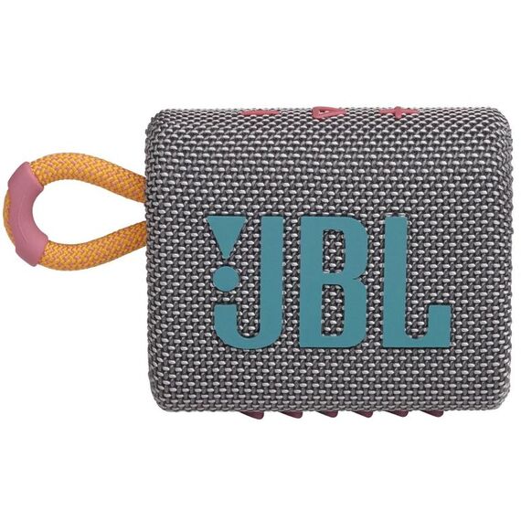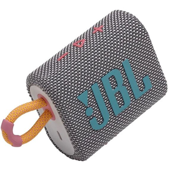 В ультракомпактном стильном корпусе JBL Go 3 удачно сочетаются разноцветная ткань и выразительные детали — колонка выглядит так же великолепно, как и звучит.