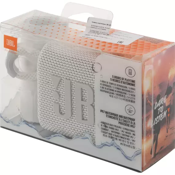 | Особенности | Благодаря защите класса IP67 от воды и пыли колонку JBL Go 3 можно брать куда угодно. В ультракомпактном корпусе Go 3 скрывается неожиданно мощный звук JBL и глубокие басы. |