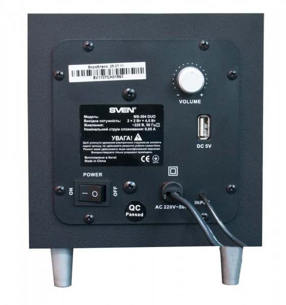 Колонки SVEN MS-304 Black 2x10W +Subwoofer 20W, Bluetooth, SD, USB, FM, ПДУ
